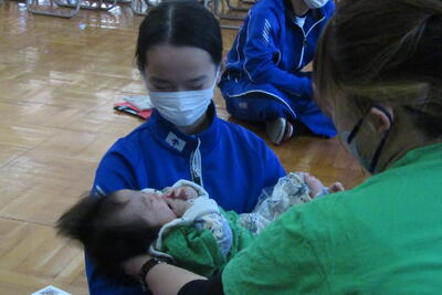 最初は少し緊張していた生徒たちですが、赤ちゃんたちの笑顔や泣き声、温かい体温に触れるうちに、自然と笑顔があふれ、心を通わせている様子が印象的でした。