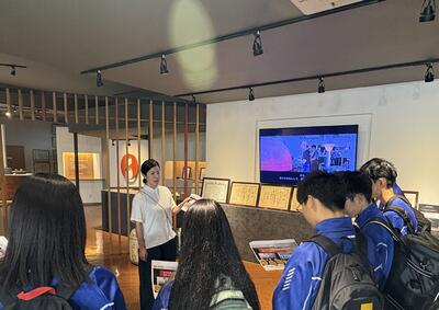 生徒は配布された町のガイドブックやデジタルマップを活用して、施設や名所などを調査し、スライドにまとめ、次回の事前学習②で産業の特徴を発表します。